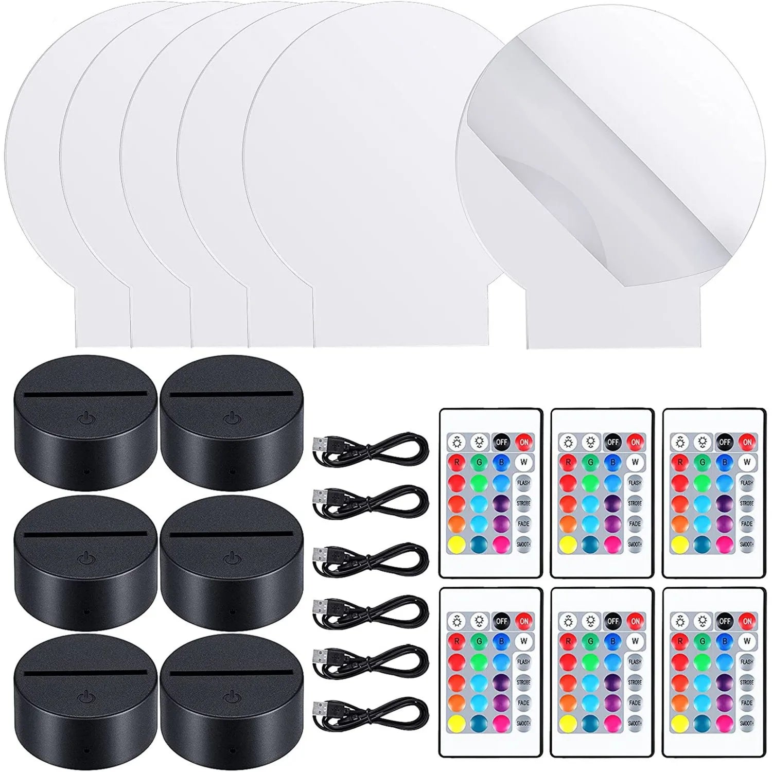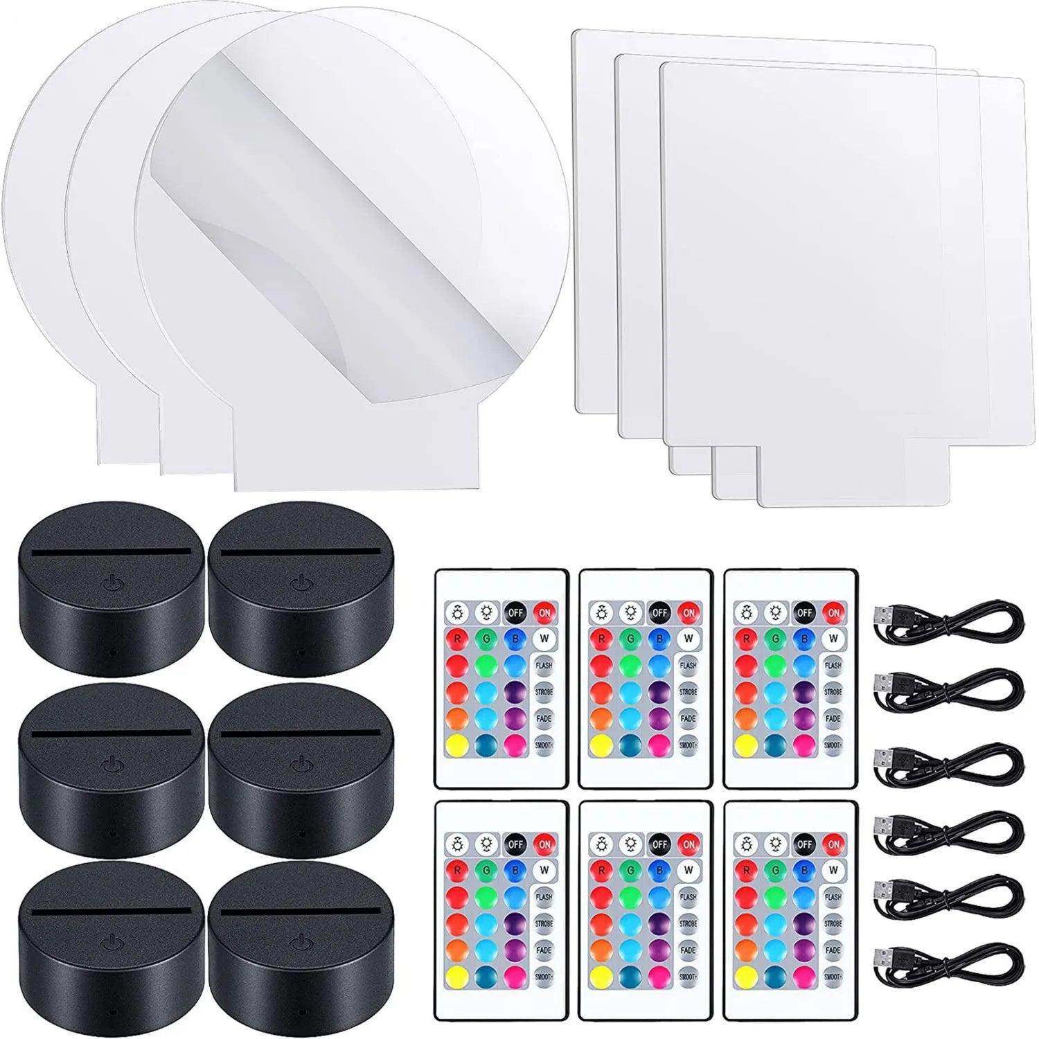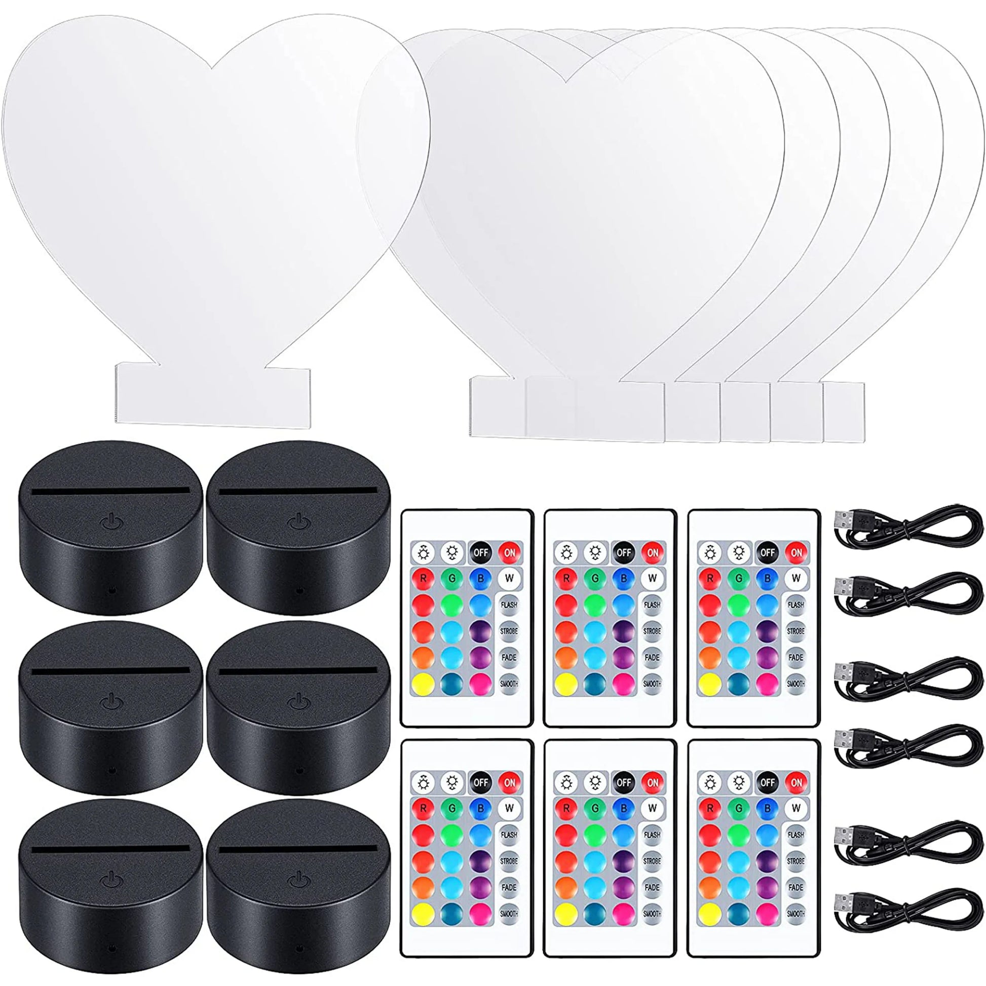 6 × Clear Acrylic Sheets (Round, Square, Heart)