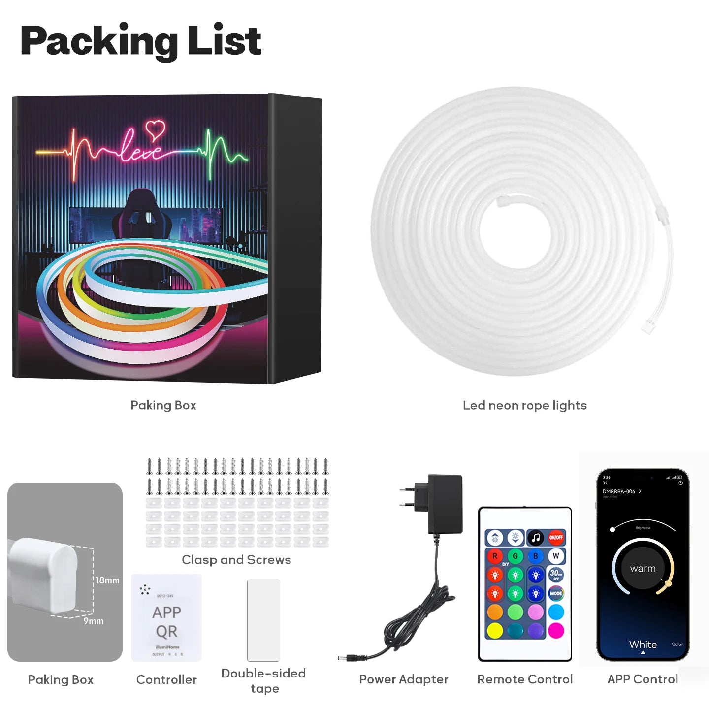 1× Neon LED Strip (30m or 40m in two rolls; other sizes in one roll)